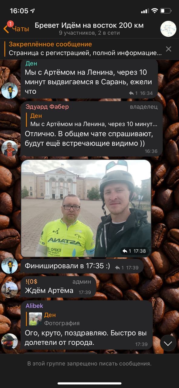 Когда я ехала я подумала что уже все приехали наверно и закрыли всё. Когда приехала домой включила вай фай и пишут в чате что ребята только подьезжают. Я не успела переодеться я сняла шлем волосы на голове слиплись от пота .Я на радостях одела шлёпанцы взяла свой городской вел и поехала на финиш.