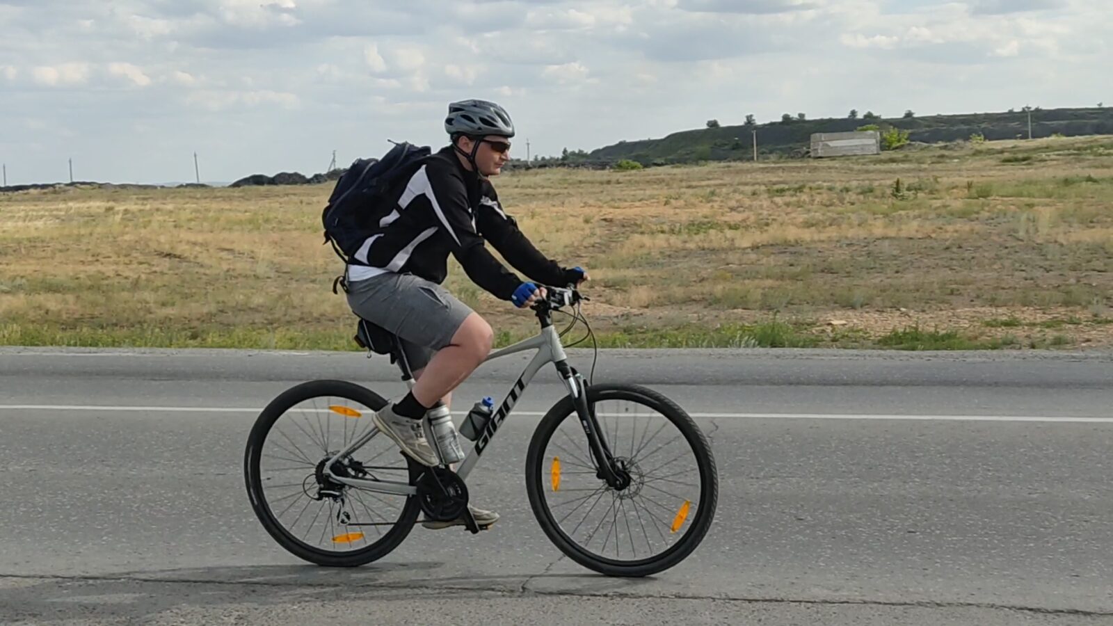 Руслан опытный рандонер. Едет казалось бы медленно, но при этом получается быстро 🙂 Всегда на своем верном синем центурионе и шоссейных покрышках для дорожных заездов. После беркута быстро догнали Руслана. Распались с Эдиком, который заметил что что то не так с посадкой у Артема и захотел с ним об этом побеседовать. А мы покатили с Денисом. Сперва мне что то захотелось притопить (все утро рвался это сделать, да поговорить тоже хотелось, тем паче не бревет еду) и я посадил Дениса на колесо и мы резво прорысачили почти до самой ТЭЦ. Потом сбавили темп и немного поболтали. Денис спросил немного про экип, про питьевую систему (не реклама, но тащусь от этого внутрирамного бачка для воды и потому вот ссылка https://adventurehydration.com/). Так же поинтересовался занимался ли я раньше велоспортом. ОМГ какое впечатление я произвожу ))) Нет, разуверил его. Да у меня же шоссейник обвешан сумками, как туринг, у профика бы инфаркт случился). Чуть позже я решил дождаться Эдика, так как обещал ему протеиновый батончик. Артем катил в своем темпе, как и Руслан. Эдик не расчитывал, что поедет так далеко, потому что выехал протестировать свой новенький Gaint SL, но как и все мы разгулялся и проехал добрую сотню. Похвалился удобным седлом, ну и так как я сейчас в так сказать в активном поиске онного то рассматривал на остановках его и так и сяк. Но толку.. Позже заглянул на сайт и выяснилось что это новая модель, не во все регионы завозят да и стоит 90 евро почти. Эх.