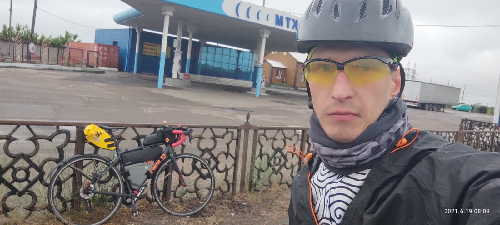 Начал писать в чат о встречном ветре, что бы были готовы. Может пацаны прочтут и попелотонят этот отрезок, а то мода у них такая — тошнят соло против ветра. Писал зря) Поворачиваюсь и на моих глазах порыв ветра опрокидывает велосипед. Он падает набок да еще и с насыпи. Благо, что насыпь относительно мягкая. Повезло. Ничего не повредил. Несколько минут обдумываю стоит ли ехать в посёлок за водой и напитками или покушать здесь и двинуть?.. Посмотрел на бачок с водой. Нет, боюсь что воды может не хватить до Шахтинска. Поселки тут редкие, да и вечером возможно все будет закрыто. Решено. Асфальт просто изумительный. Еду по центральной улице разглядываю дома и быт. Ребятня совсем маленькая и много, играет то там то тут. Некоторые с велосипедами) Со мной здоровается мальчик, я отвечаю) Где же большой двухэтажный магазин в центре поселка?.. Рассказывали же. Вижу бабушек у дороги и спрашиваю у них про большой магазин. Мне показывают на недостроенную хибару. Хорошо, посмотрим. Подкатываю и думаю что делать с великом. И как раз девушка заходила, то ли сотрудница магазина, то ли совладелица. Говорит прям так оставляйте у нас не трогают. Думаю «хорошо вам. А у нас ещё как трогают. Так трогают, что потом не найдёшь». Пока доставал барыши из недр сумки, из припаркованной машины начали расспрашивать откуда, куда, зачем. Рассказал и пошел затариваться. В магазине была очередь, но хозяин радушно пропустил меня вперед. Говорит сильно отстаешь, первый часа два назад был. Говорю знаю что был, я не тороплюсь, возможно ещё трое будут. Взял колу и сарыагашку. Минералка была со льдом, а кола просто была. Была выпита мной чуть ли не залпом. Тан я передумал брать. От него сильно потом хочется пить. Вышел я значит, переставил вел к забору, достал из недр сумки бутеры и огурцы. Стою кайфую, жую, рассматриваю сельскую жизнь. Люди всё-таки занятные. Все разные. На жигуленке подкатил мужик с маленьким ребёнком. Ребенок начал кататься на трехколесном велосипеде, вынутым из машины. Мужик походил туда-сюда, из магазина в магазин. Забрал детё и уехал. Подъезжает мальчик на китайском подростковом МТБ. Не особо тормозя будто с педалей просто сошёл на землю. Тадах! Издал звук велосипед от такого обращения. Т.е. он просто не сбавляя скорость бросил вел на землю и пошел в магазин. У меня глаза на лоб полезли от такого обращения. Я в детстве даже свой старенький (точнее даже не мой, а отцовский) стальной Орленок жалел и так не бросал. Хотя он повидал виды еще до меня. После пацана приехали две девчушки. Эти были поаккуратней, но тоже побросали на землю велосипеды на бок. Не успел я дожевать последний бутер, как подлетают пацаны. Втроем. С Велонычем на передовой. Поставили велы подле меня, спросили куда идти и скрылись в недрах магазина. Надо сказать что там довольно мало места внутри. Я доел. Чтож подожду. Вышли кто с чем. Набрали минералки какой то в стеклянных бутылках с богатым составом солей. Сосиски, сардельки, мороженое и т.п. Мне уже совсем никуда не хотелось и решил сходить еще разок купить пару охотничьих колбасок, глядя на остальных. Снова без очереди. Видимо чужих тут любят больше, чем своих 😁 (шутка). В общем с парнями я потратил 40 минут и мы в конце-концов тронулись. Максим отделился от нас в поисках, назовем это приключениями. Мы же, увлекаемые попутным теперь уже ветром рвались домой. Перед по