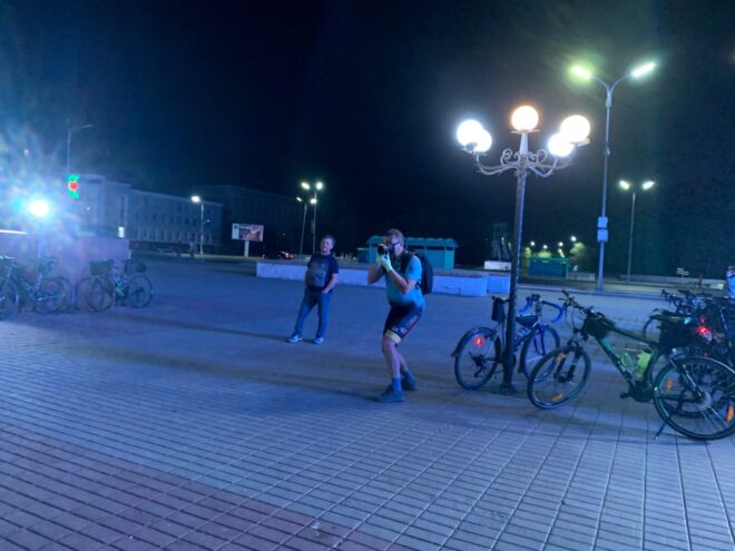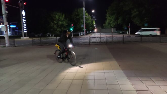 Копался я с добрых полчаса наверное. Долго искал в сумке среди фантиков мармеладных мишек. Причем это казалось таким важным. Видимо от недостатка сна и усталости мозг зацикливается на каких-то установках. Вытащил почти все из сумки на землю, пока не нашел злосчастных желеобразных медведей, к которым так и не притронулся. Хотя заточил на ура рогалик и несколько фиников. Замерз, мышцы задеревенели на ногах от отсутствия нагрузки. Еле забрался на вел, еле вспомнил потом как педали крутятся. Ничего. Сейчас будет подъем тут и погреюсь. И правда очень скоро стало душно. Врубил пониженные, не мог заходить быстро. Устал. И это раздражало. На втором подъёме показался, как я тогда подумал Миша, а на самом деле это был Велонычъ. Он догнал и обогнал Диму и Сашу. Которые к слову шли следом за ним метрах в трёхстах (но это неточно). Недосчитался одного. Ага. Странно.. Списал на то что Максм наверное подотстал, может снова прокололся.. В сторону Петровки катить было проще — спуски. Но дорога казалась невероятно длинной. Справа начались частые всполохи. Грома я не слышал. Может потому что музыка долбила в ушах. От музыки у слову, устал и вскоре я вытащил наушники из ушей. Хотелось спать, все раздражало, но главное глаза не слипались. Если бы начал засыпать за рулем, то пришлось бы ложится в кустах и кимарить. Одному очень опасно ехать засыпая. Приглядывать некому. Ветер дул попутно боковой, позже он стал боковым. Очень долго не появлялась Петровка, на которой нужно свернуть направо.