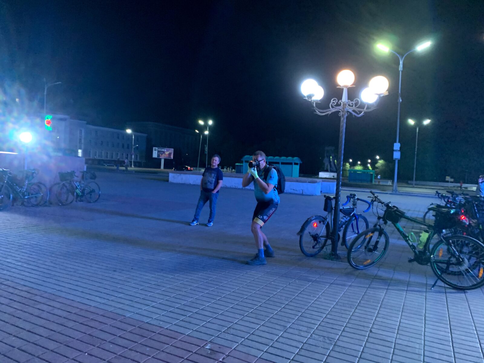 В среду было покончено с навешиванием крепления, подбором съестных припасов и навешиванием большинства сумок. В четверг закрепил фонари, зарядил батарейки, осталась только подседельная, т.к. до последнеднего не знал как прикажет одеваться погода и что уйдет в сумку, а что останется на мне. Про велоаптечку, челоаптечку и т.п. писать не буду (слышу как кто-то вздохнул с облегчением). В день старта, против обыкновения, собрался за 3 часа до старта и прилег вздремнуть пару часов. Но не тут то было. Адреналин и волнение перед предстоящим заездом не давали провалиться в сон. Тут же пришла мысль о том, зачем вообще делать старт в полночь, когда можно стартануть вечером, часов в 9. Спать все равно не получается на взводе, а финишировали бы раньше, не по темноте, ведь 400ка расчитана на 27 часов, а проезжается примерно за сутки. В принципе Миша и говорил об этом на старте. Надо будет вынести этот вопрос на обсуждение. Ведь уснуть все равно невозможно, а подготовиться можно и заранее. Провалялся 1,5 часа. Встал, включил телефон и решил неспеша выдвигаться. Поужинал макаронами с курицей, запил их чаем с мёдом. Оделся, написал Эдику, что выезжаю и покатил неспеша, прогревая мотор. Ехал осторожно, аккуратно избегая любых неприятностей на дороге. На улице же была теплыыынь, тишина, красота! Ни на мека на непогоду. Даже не верилось, что будет холодно и мокро. Еду, слушаю музыку в плеере, свернул в парк. Людей видимо-нивидимо. Качу себе рассматриваю всех. А народ кто гуляет, кто спортом занимается. И это почти что в полночь. Подъезжаю к ДК Горняков. По ощущениям все были уже на месте и даже больше. Съехал с дороги и начал нарезать зигзаги под музыку в ушах. Эх здорово.. не ехать бы никуда 😀. Как уже сложилось, было много провожающих. Эдик уже был на старте. Их было даже двое 😀. Начали беседовать о своем, велосипедном.