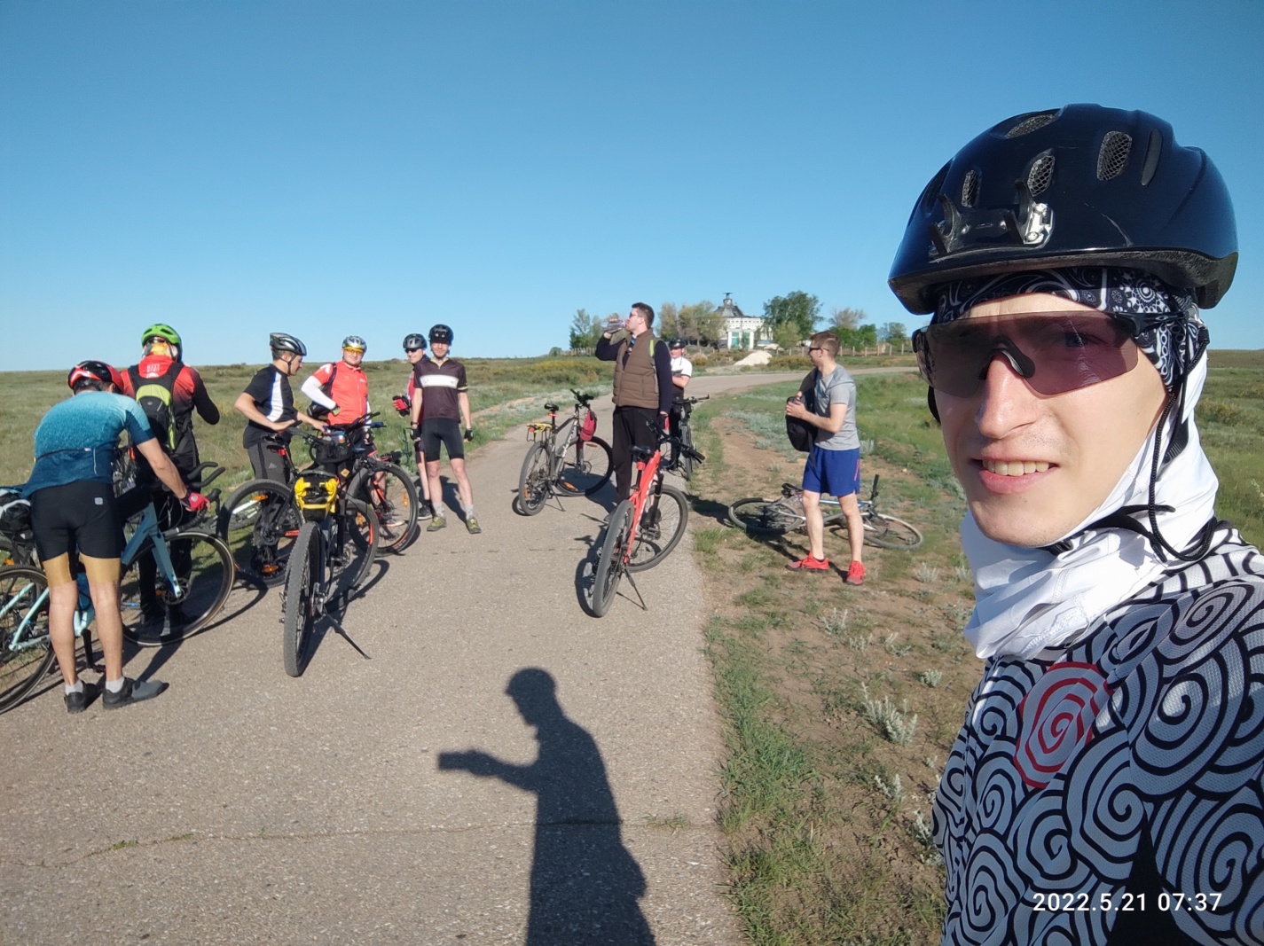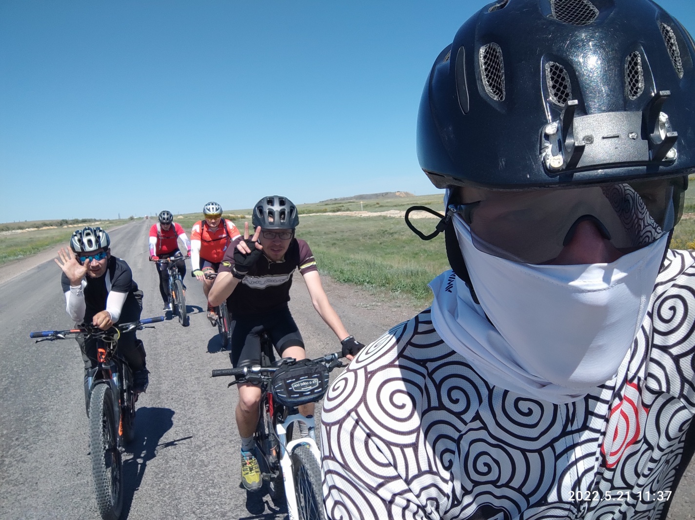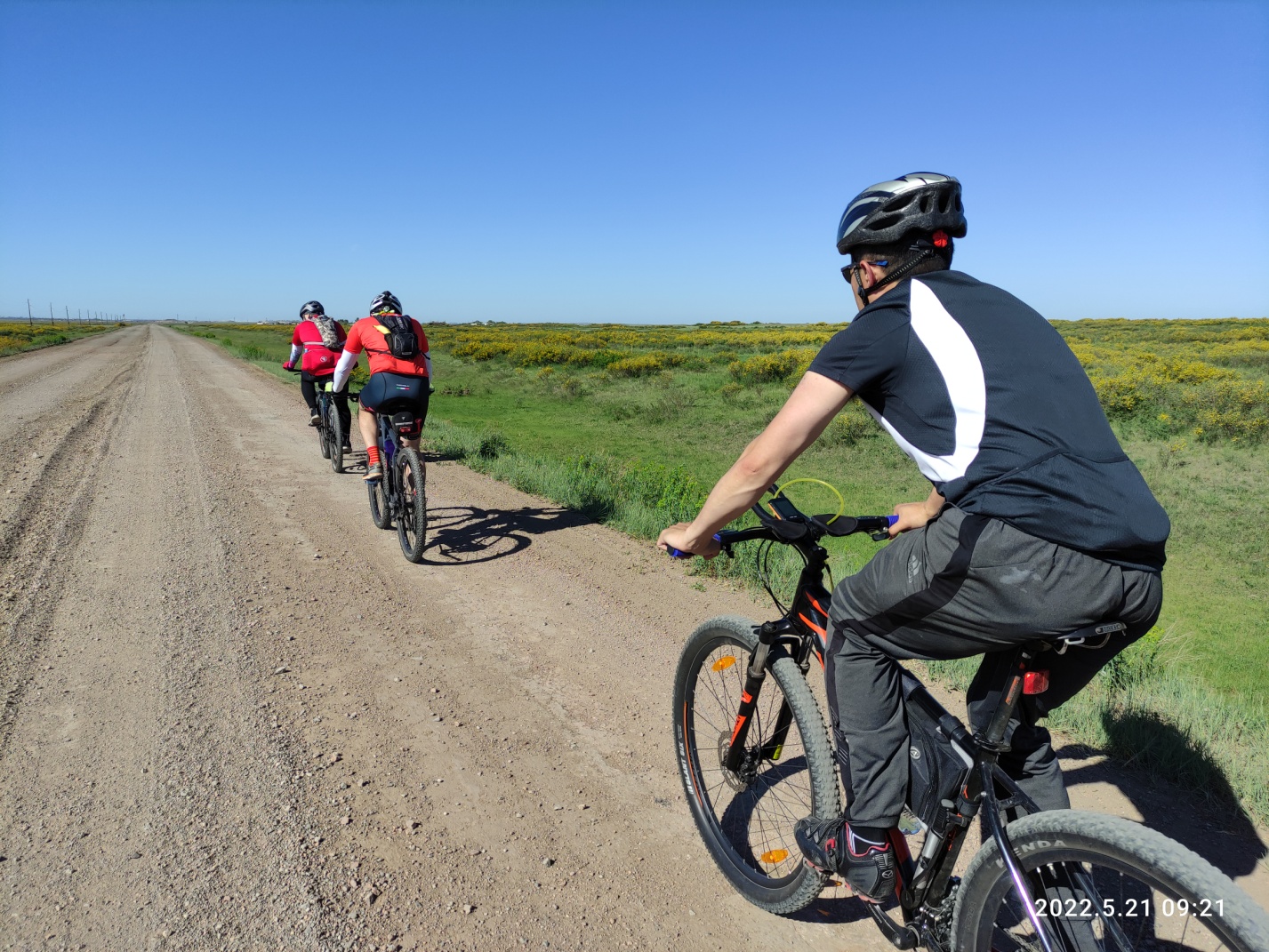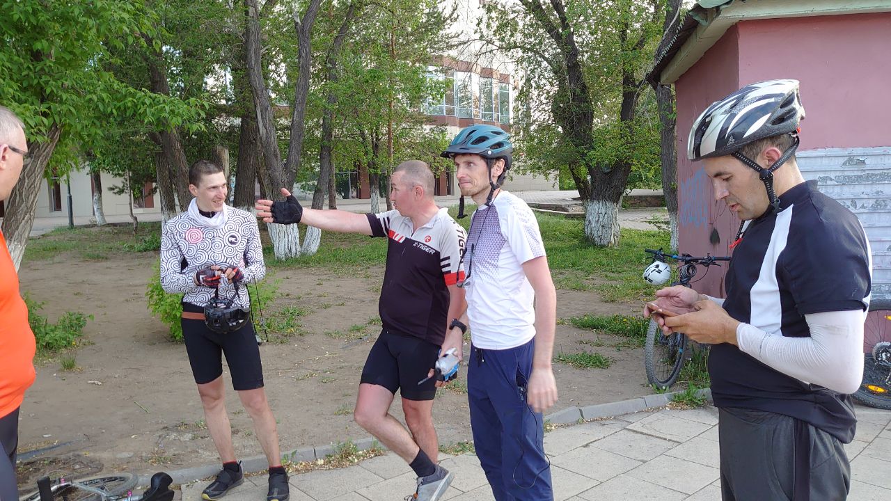 Проскакиваем перекресток на Шахстинск на зеленый. Скорость падает до 15 км/ч. КП в Карабасе закрывается в 13:00. У нас 1,5 часа и я чувствую 5й точкой, что не успеваем, хотя математика говорит что все нормально. Говорю всем что надо поднажать. Впереди меня едет Вова и он передает Эдику мои слова, на что тот отвечает, что я вру. Я психую и иду во главу состава. Скорость повышается минимум до 17 км/ч. Хотя я еще не отдохнул от ветренного спуска в Сарани.