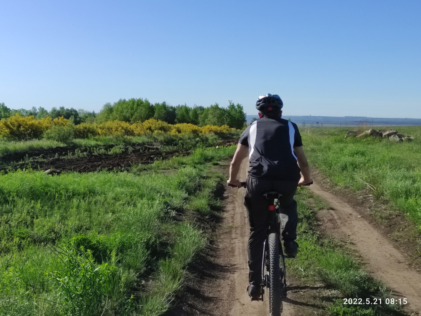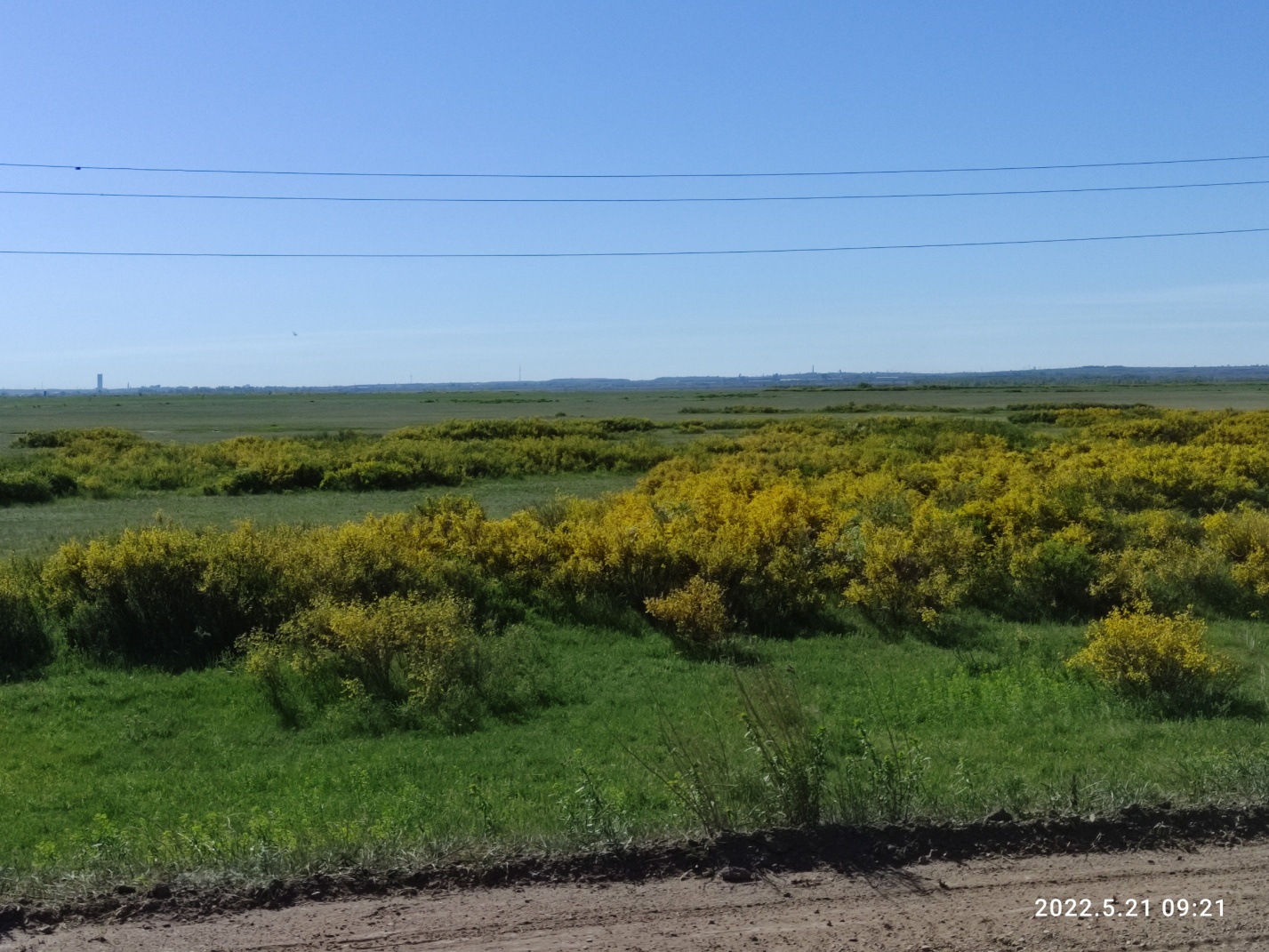 Пролетаем зловоние свинофермы, уходим на поворот к другим щебневым карьерам. Тут по бокам живописно — поля цветущего караганника. Грейдер подгаживает мелкой гребенкой, хорошо что только местами. Ветер становится то ли встречным, то ли встречно-боковым. Терпим. Рандонер.. ну вы знаете.