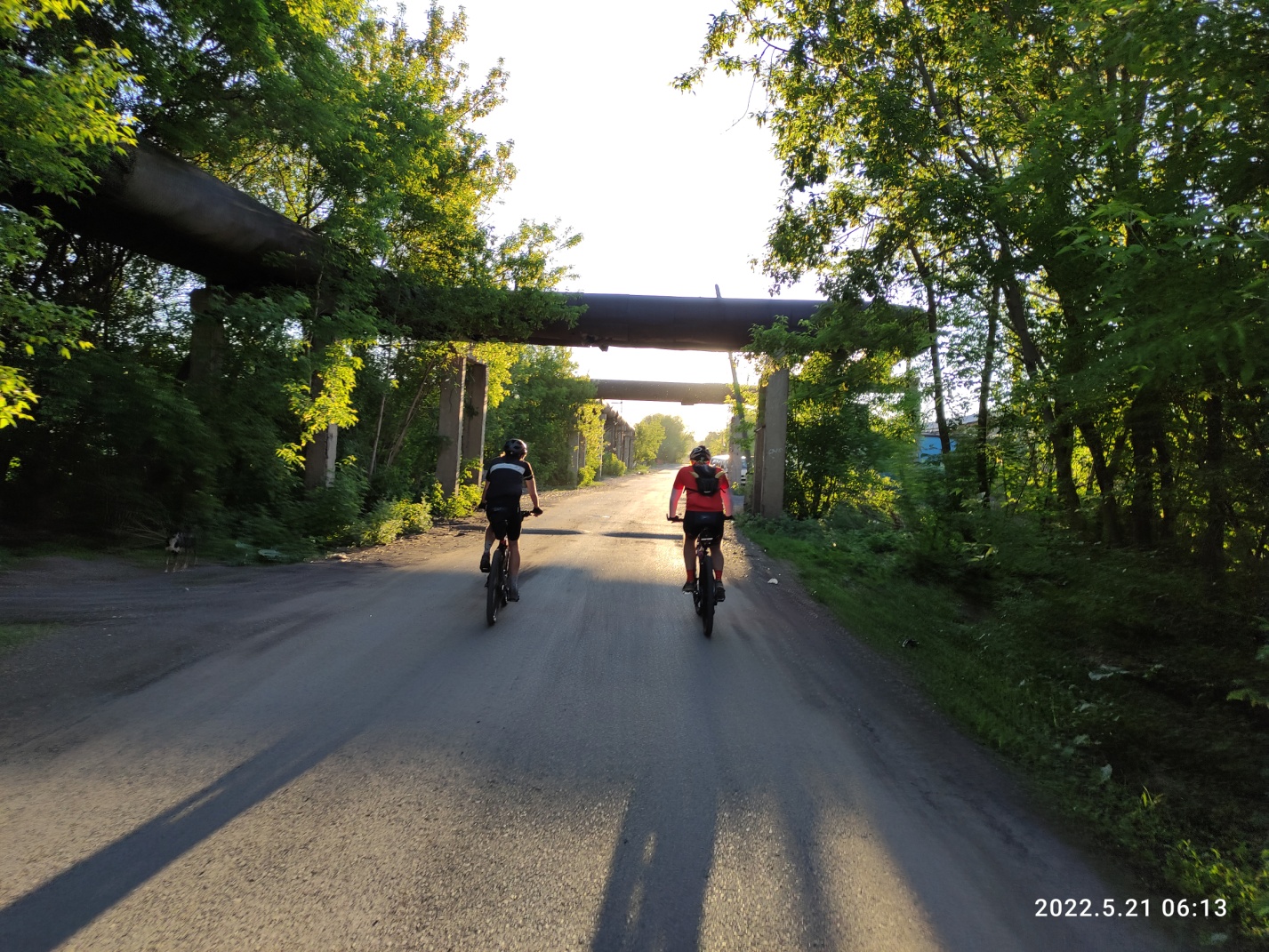 Погода позволяла. Было тепло, даже несмотря на раннее утро и все, так или иначе понимали, что днем будет пекло со всеми вытекающими. Мы двинули по парку кружа по велодорожкам и песчаным тропинкам среди буйства зелени вдоль детской железной дороги, вынырнули у ресторана Чаоян и ушли поверх коллектора реки Букпа в сторону ЗАГС (ныне РАКС). Там попетляли по закоулочкам и снова вынырнули, уже к стадиону Шахтер. Быстрая перебежка через дорогу и мы снова у реки Букпа, мчимся по улицам частного сектора с пока еще интересными старыми названиями, типа улицы Телевизионная, поднимая всех собак на лай.
