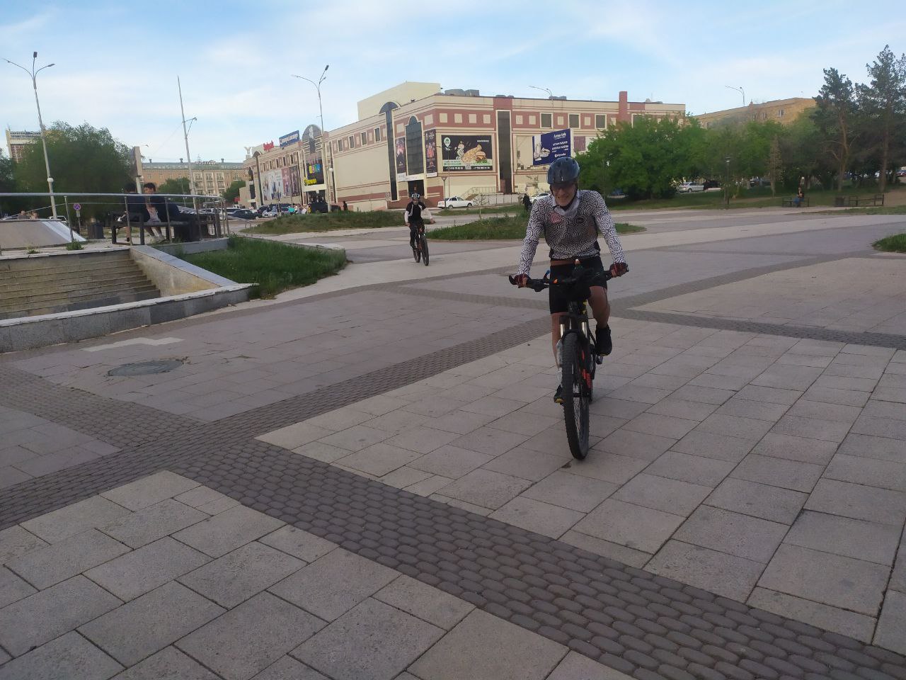 Заезжаем в Сарань. На стадиончике, у спортплощадки люди сажают деревья. Несколько подразрушенная и неровно укатанная велодорожка, но она есть. Проезжаем ламповые двухэтажные сталинки и останавливаемся у магазина — закуп воды, газировки и перекус. Шутки-прибаутки, потеря времени и снова торопимся, но не очень (о чем я потом буду причитать про себя около 80 последних километров).