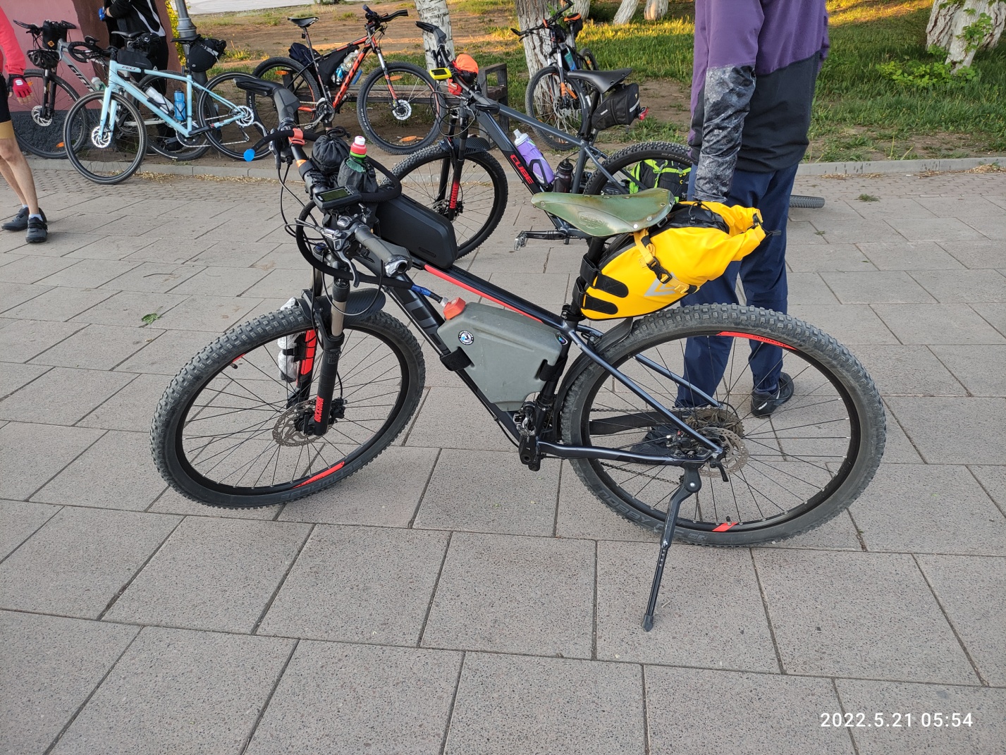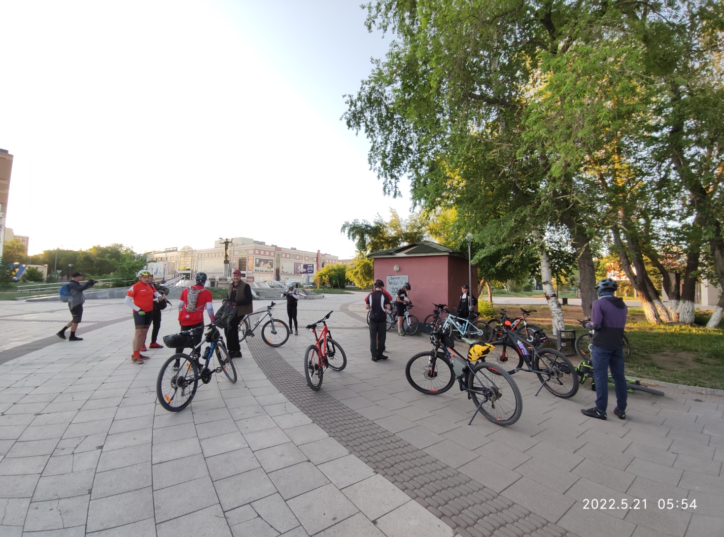 Итак, суббота 5:45 — на старте у магазина Лимпопо уже собралась большая часть участников. Всего зарегистрировалось 18 человек, на старт вышли 14. (Кстати спасибо директору магазина — Александру, за гостеприимное предложение воспользоваться насосом, туалетом и другими благами магазина!).