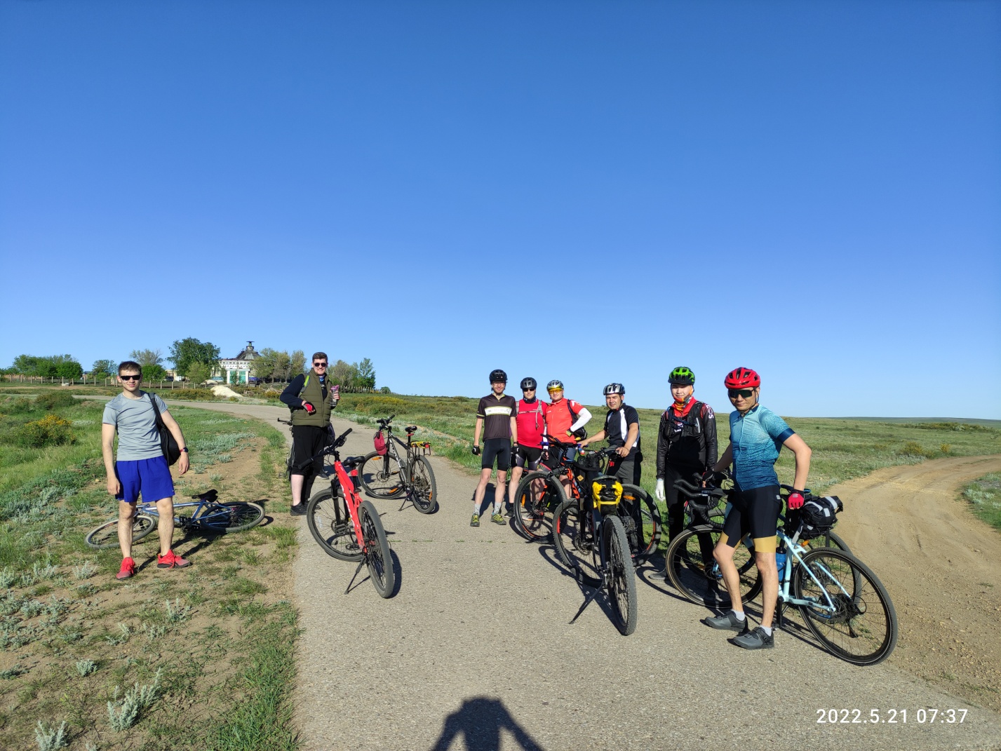Солнце уже кажется предзакатное и жара спадает или мне кажется и в глазах темнеет?. ))) После моста кусочек встречного ветра и разворот от него почти что на 180 градусов и вниз к поселку Молодежный. Ээээх красота! 26 км в час по грунтовке вселяют в меня надежду. Бытро выскакиваем на асфальт — прямая до Доскея. Тут мы иразогнались до 40 кмч — это было божественно. Я выбрал все передачи и подкручивал сколько получалось — хорошая возможность нагнать упущенное время.