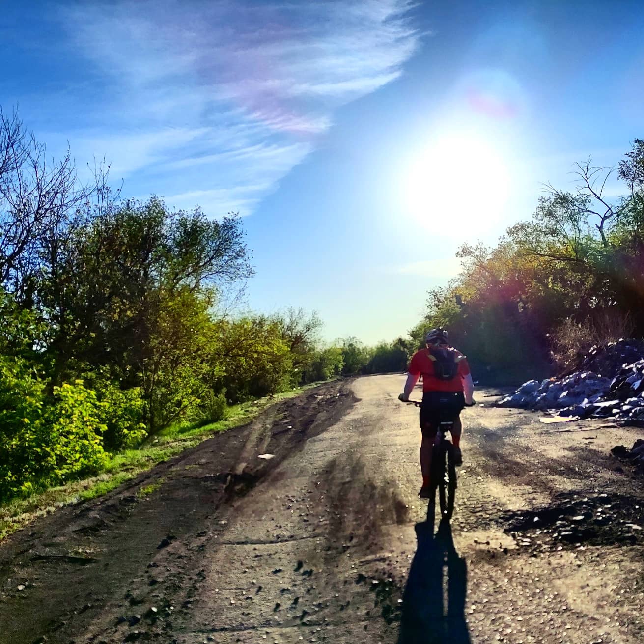 Эдик старается внести элементы краеведческой экскурсии в бревет, рассказывая рядом катящим первопроходцам о памятниках жертвам аварий на шахтах, разбираемом каздрам театре, карьерах, постройках и самих шахтах. Я же верчу головой, стараясь впитать как можно больше красивого вкусного пахнущего майского утра. Иногда мне в голову приходит что-нибудь и я спрашиваю, или отвечаю, но в целом просто плыву на эмоциях приподнятого настроения.