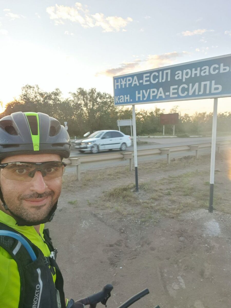 Лимит времени поджимал и были мысли отказаться от Обеда, но боясь, что сил не хватит до финиша все-таки пообедал в Нуре. Еда не лезла, но есть надо было. До села Кабанбая батыра, вымотанный, ехал со скоростью 20-25 км./ч. После, наконец-то ветер стих и до Астаны, зная, что в лимит времени уже точно вхожу, ехал спокойным темпом.