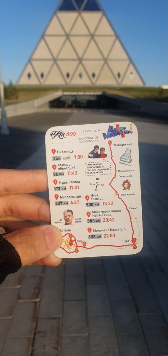 После прохождения Бревета на 400, от звания суперрандоннёра отделял только успешное прохождение Бревета на 600, чем я и решил заняться. Первая попытка была не удачной — сильный встречный ветер на расстоянии более 100км в первый день и такой же ожидался на второй, только на большее расстояние, плюс дождь. Поэтому я решил сойти, доехав до Караганды. Тогда мне компанию составил Владимир Дехнич. Он преодолел непогоду и единственный финишировал из всех участников того Бревета и стал первым SR 2024 г.