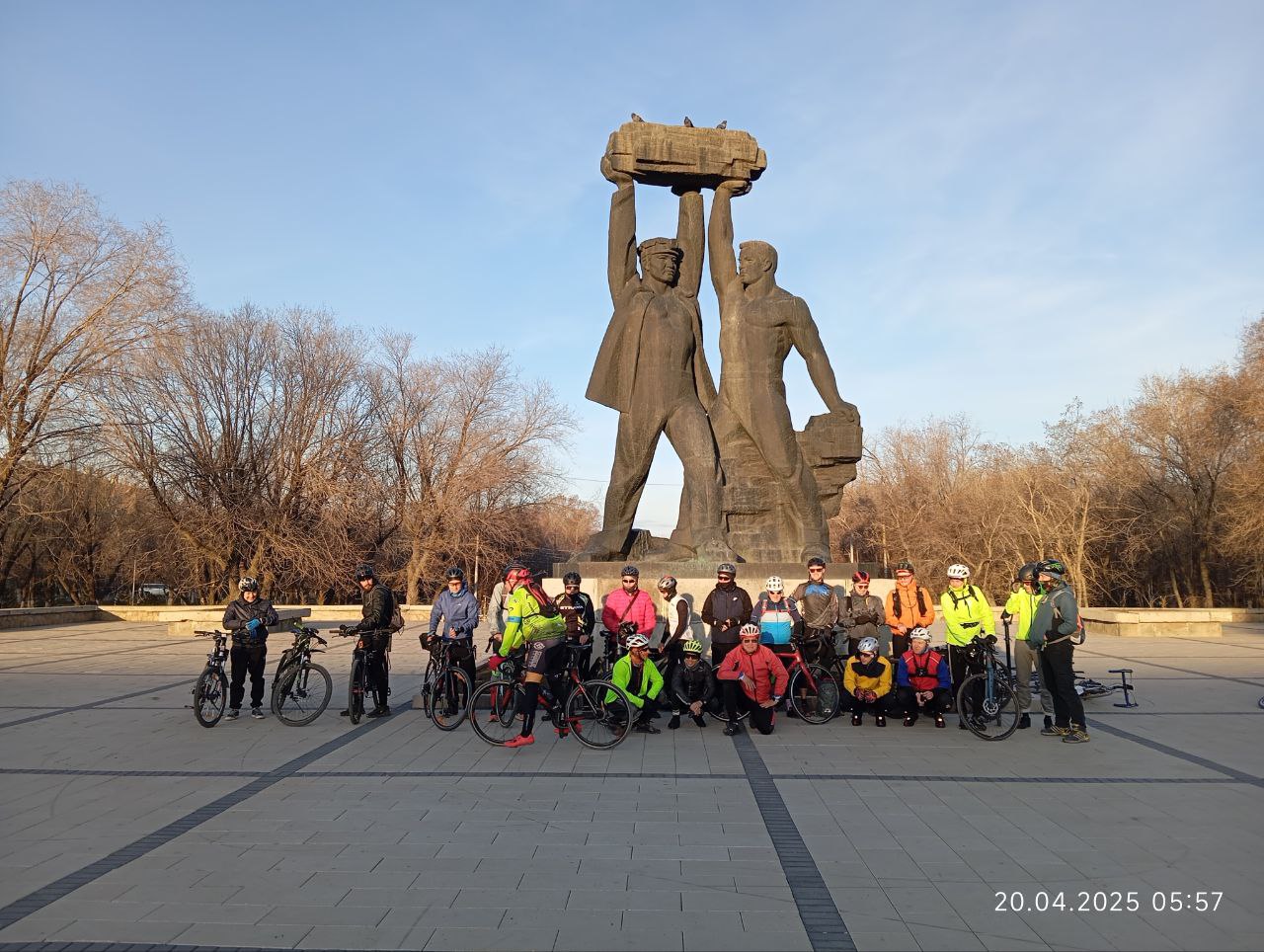 Знак дорожный видел перед въездом в Караганде: сделай селфи. Сделал. Немного позже чебурахнулся, когда по обочине стал обруливать яму на асфальте. Компьютер решил, что каюк и выкинул сообщение на экран, что об аварии надо бы поведать… Кому-чему? Самая большая проблема не в падении, а в том, что его результатом на 195-м км трек перестал писаться. А так велосипед целый, я – тоже, и даже ветровка не порвалась. И боишься нажимать куда-то, не стереть бы трек… «Не сохранять», зажмурившись нажал, и помчался дальше к финишу. Там меня ждали, там бы первые мне посочувствовали бы друзья: нет трека – заезда не было. Побсуждали перепетий бревета, и что характерно – никто не жаловался на ветер, все были довольны и относительно жизнерадостны. Из цифр бревета