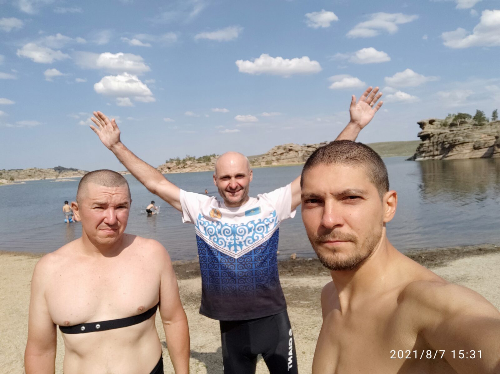 Ветер встречный не сильный но горячий, жарче температуры человеческого тела, средняя скорость упала… И Я ехал с мечтой о купании в водах озера Сабандыколь и затарится на заправке… Решили что бревет бреветом а искупаемся во всех трёх озёрах по пути… Что мы и сделали в итоге… ☺ 👍